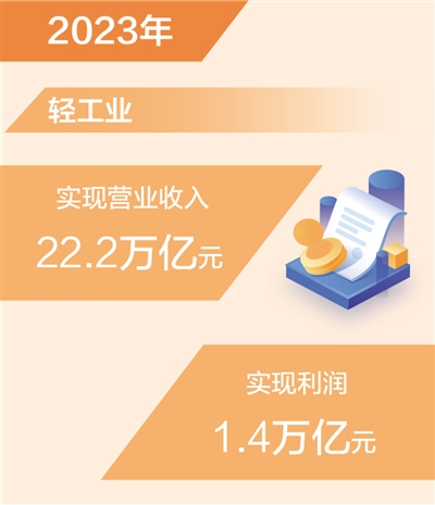 本報(bào)北京2月21日電 (記者韓鑫)中國輕工業(yè)聯(lián)合會近日發(fā)布數(shù)據(jù)顯示,2023年我國輕工業(yè)實(shí)現(xiàn)營業(yè)收入22.2萬億元,同比增長1.6%,實(shí)現(xiàn)利潤1.4萬億元,同比增長3.8%。輕工業(yè)以占全國工業(yè)13.2%的資產(chǎn),實(shí)現(xiàn)了全國工業(yè)16.7%的營業(yè)收入和18.1%的利潤,有力支撐工業(yè)經(jīng)濟(jì)穩(wěn)定發(fā)展。